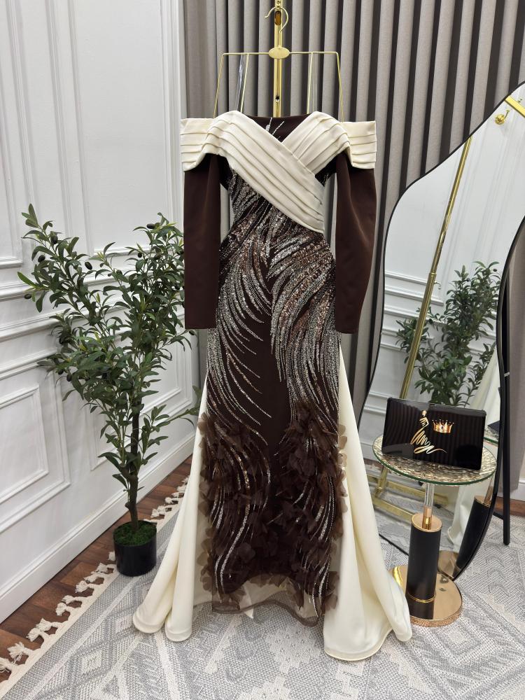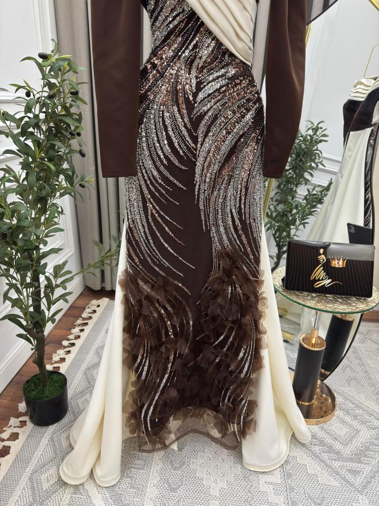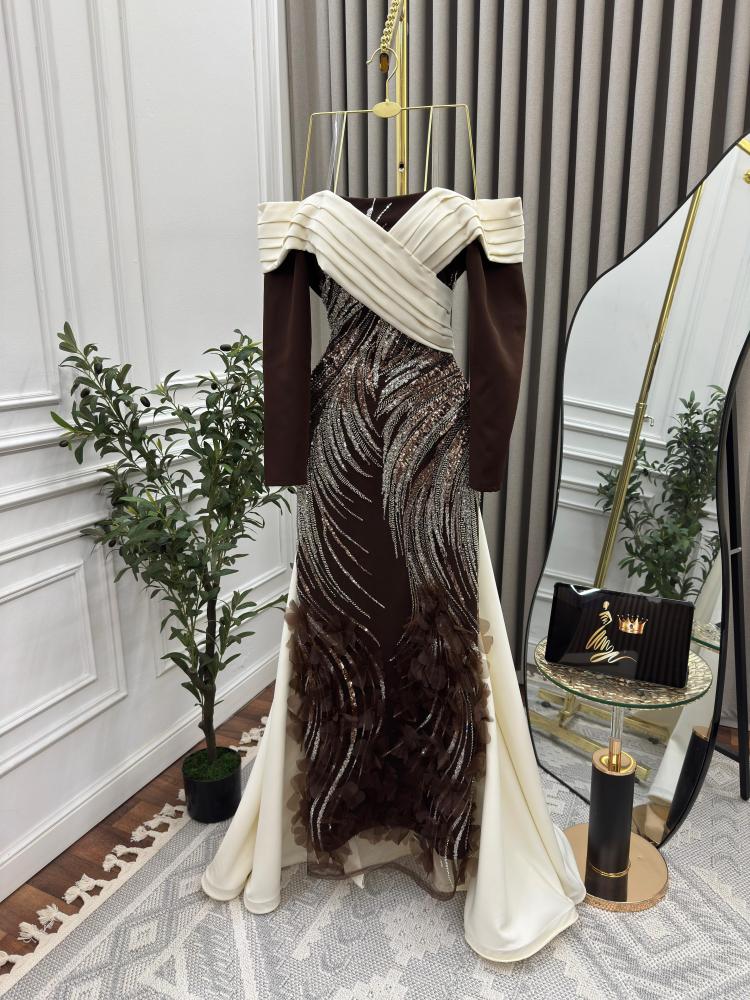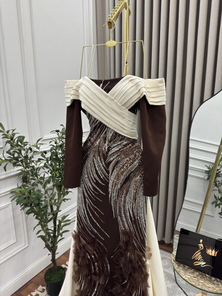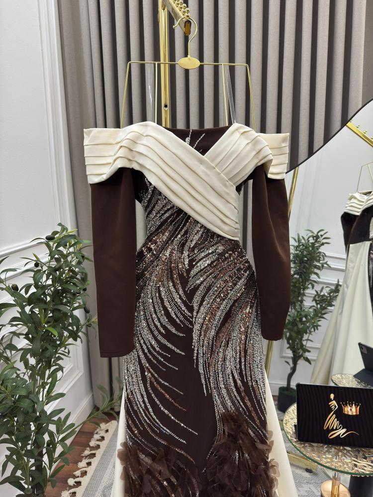 فستان سهره بني مطرز