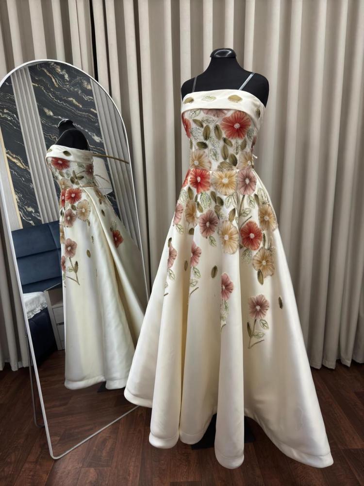 النوع : تصميم راقي جدا مع ورود بارزهالخامة : ميكادو ورود بارزاللون : بيجالمقاسات : S-M-L-XL-XXL-الطول :60نوع السحاب : خلف + حبلغير قابل للتمدد