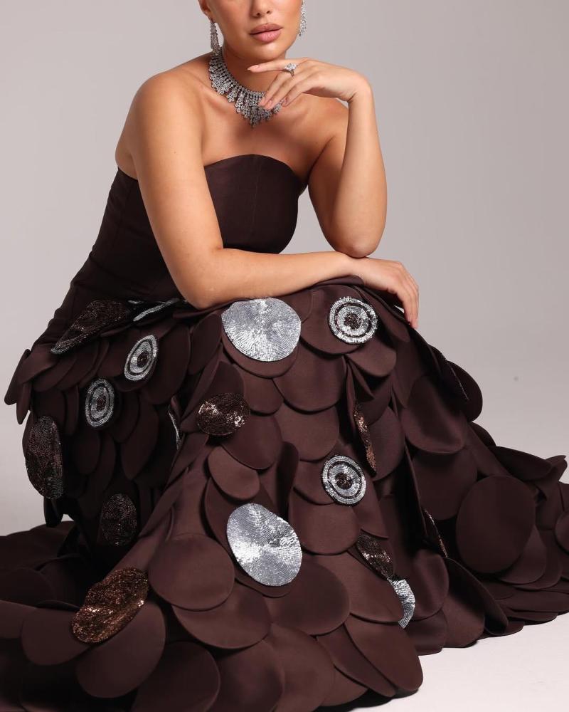 فستان ميكادو راقي بني