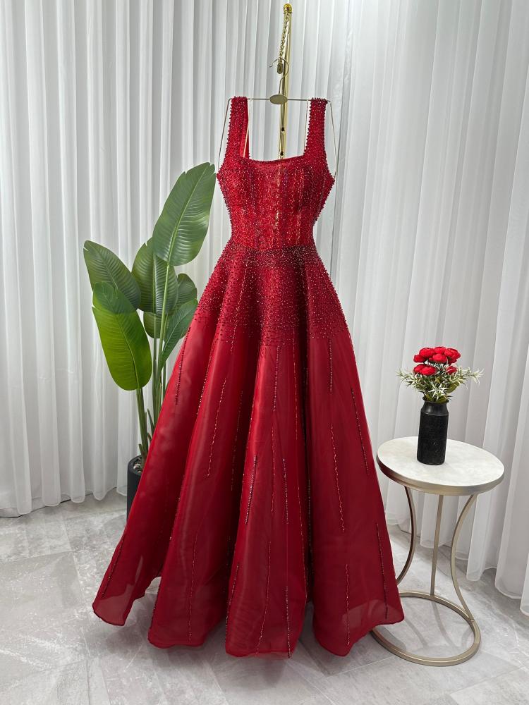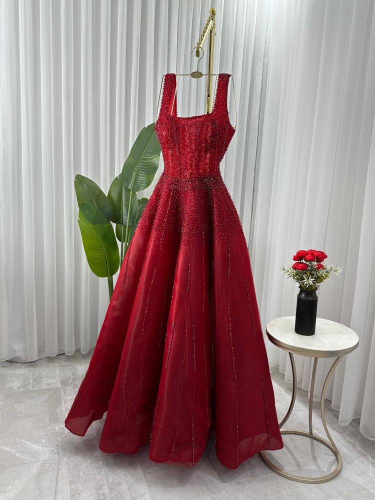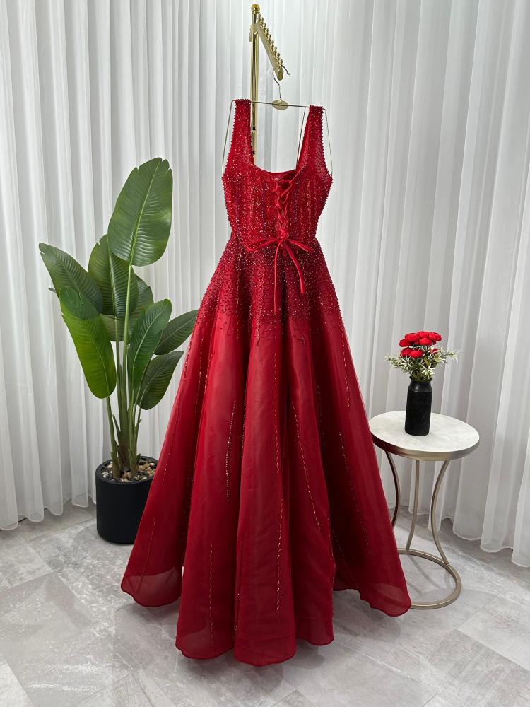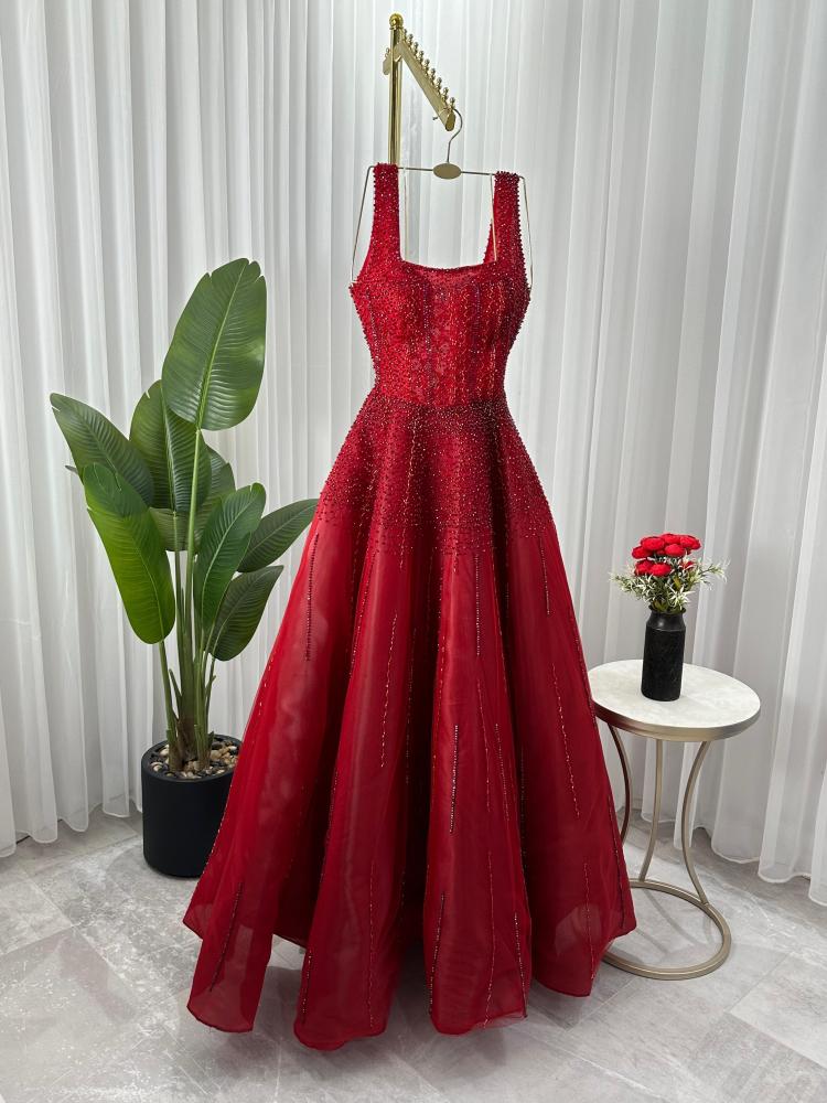 فستان  جورجينا مطرز احمر