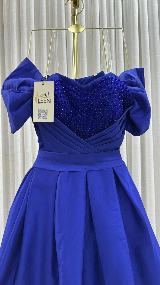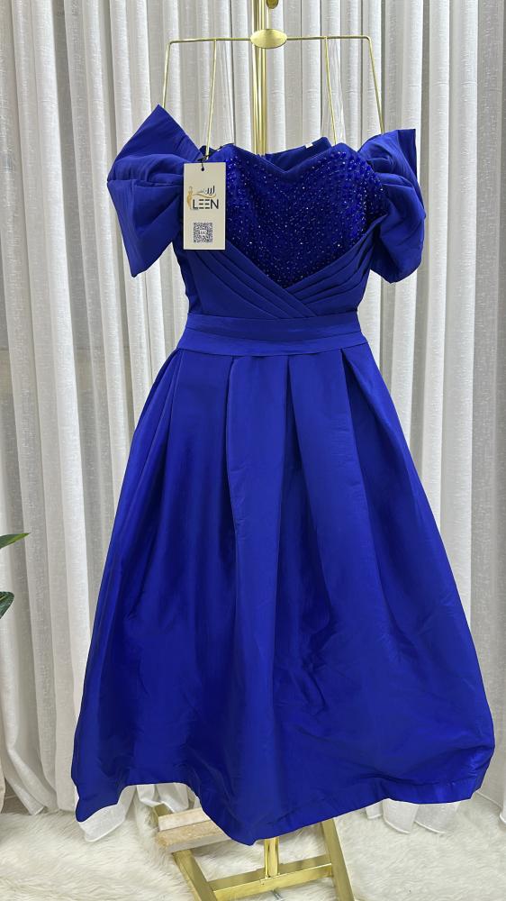 النوع : فستان سهره قصير نيليالخامة :شانطوناللون : نيليالمقاسات : S-M-L-XL-الطول :48 انشنوع السحاب : خلفغير قابل لتمدد